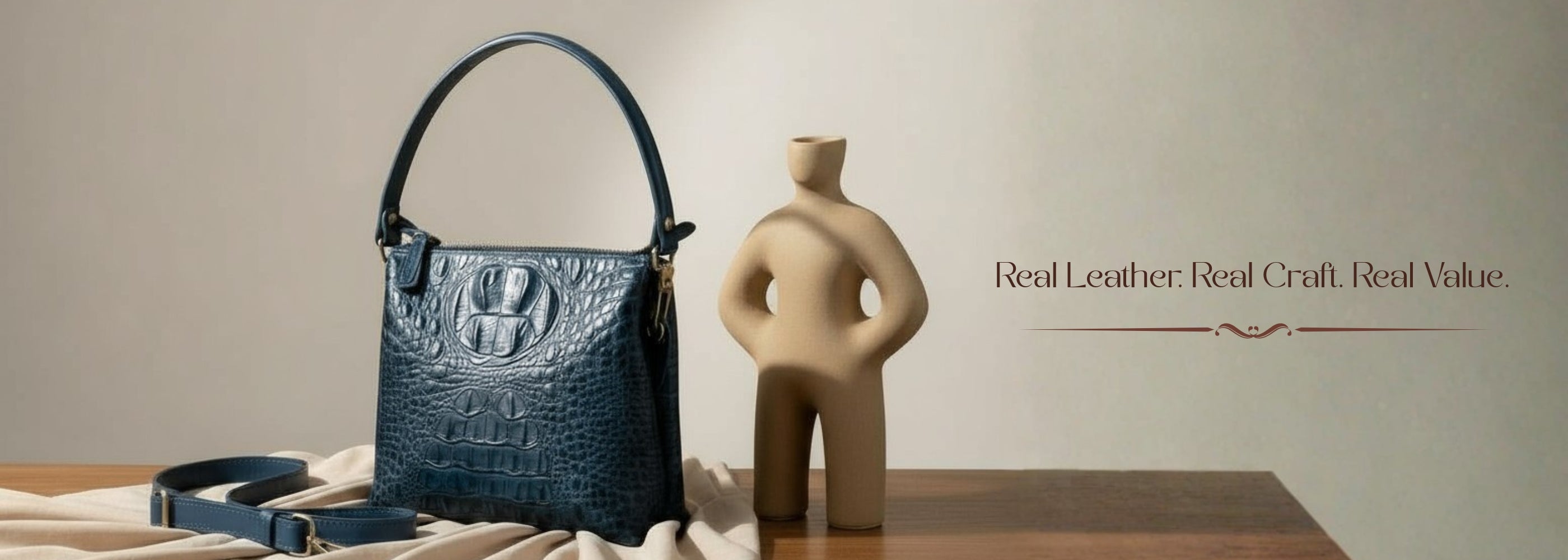 We use high-quality genuine leather for all our bags, wallets, and handbags to ensure durability and longevity.